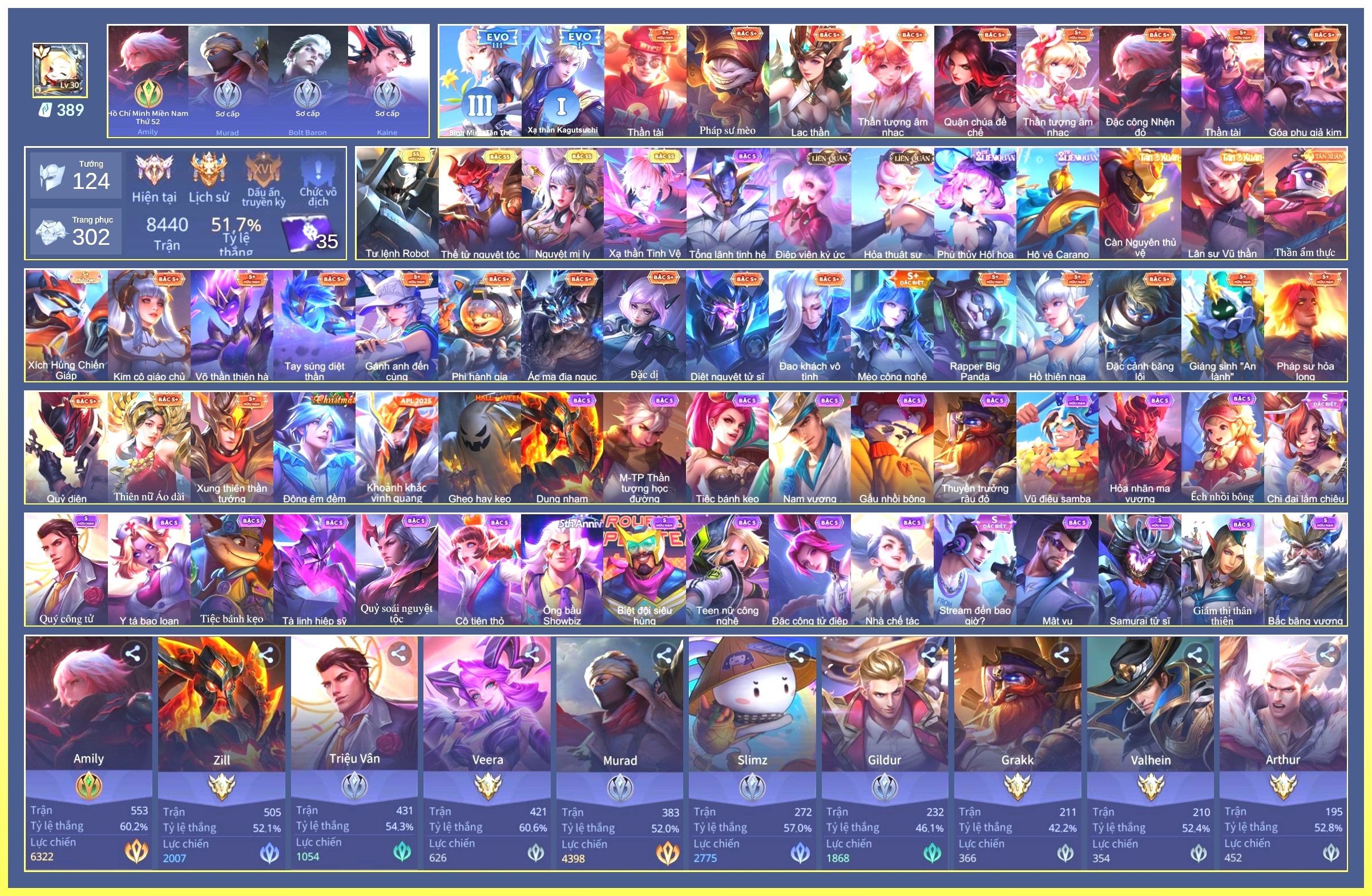 Nổi bật: Full Tướng.Full Ngọc.Dư 332K Vàng.Dư 3 Đá Quý.Zata Chí Tôn Tà Phượng.Richter Thần Kiếm Susanoo.Murad Siêu Việt.Flo Seven.Valhein Xạ Thần.Nak Siêu Việt.Ngộ Không Nhóc Tỳ Bá Đạo.Butterfly Bình Minh Tận Thế.Enzo Cá Heo Bảnh Chọe.Celica Vịt Lướt Bọt Biển.Quillen Đảo Thiên Đường.Kahlii Linh Hoa Thần Nữ.Slimz Linh Hoa Đạo Sĩ....