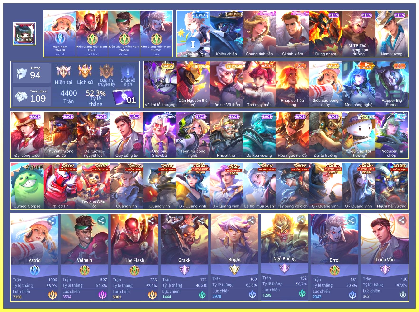 Rất Nhiều Skin Đẹp Vip.Ngọc 90.Dư 4...
